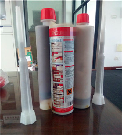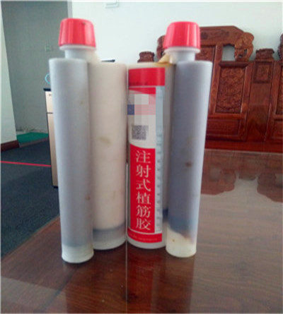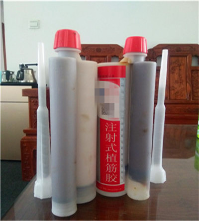 4、注膠:在膠瓶上裝好混合管,用膠槍先少量擠掉前段部分未混合均勻的膠料,然后往孔內(nèi)注膠。