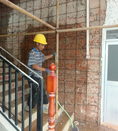 清除鋼筋植入部分的銹跡、油污和氧化層,露出金屬光澤