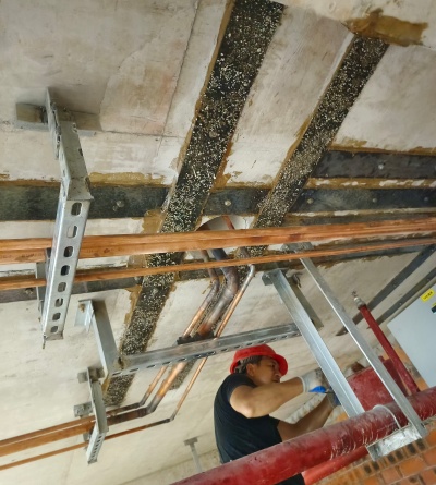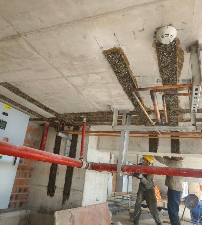 粘鋼加固是通過結(jié)構(gòu)膠將鋼板與樓板混凝土表面粘結(jié),使鋼板與原結(jié)構(gòu)共同受力,從而補(bǔ)充樓板開洞后損失的抗彎、抗剪承載力,恢復(fù)結(jié)構(gòu)的安全性和穩(wěn)定性。結(jié)構(gòu)膠的粘結(jié)強(qiáng)度是關(guān)鍵,需能有效傳遞應(yīng)力,讓鋼板和混凝土協(xié)同工作。
